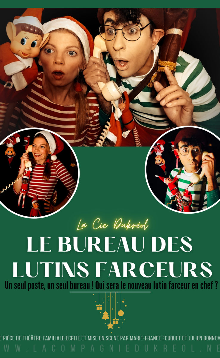 Le bureau des lutins farceurs est un spectacle familial bourré d'humour! Les deux personnages embarquent les spectateurs dans une spirale de délires effrénés!