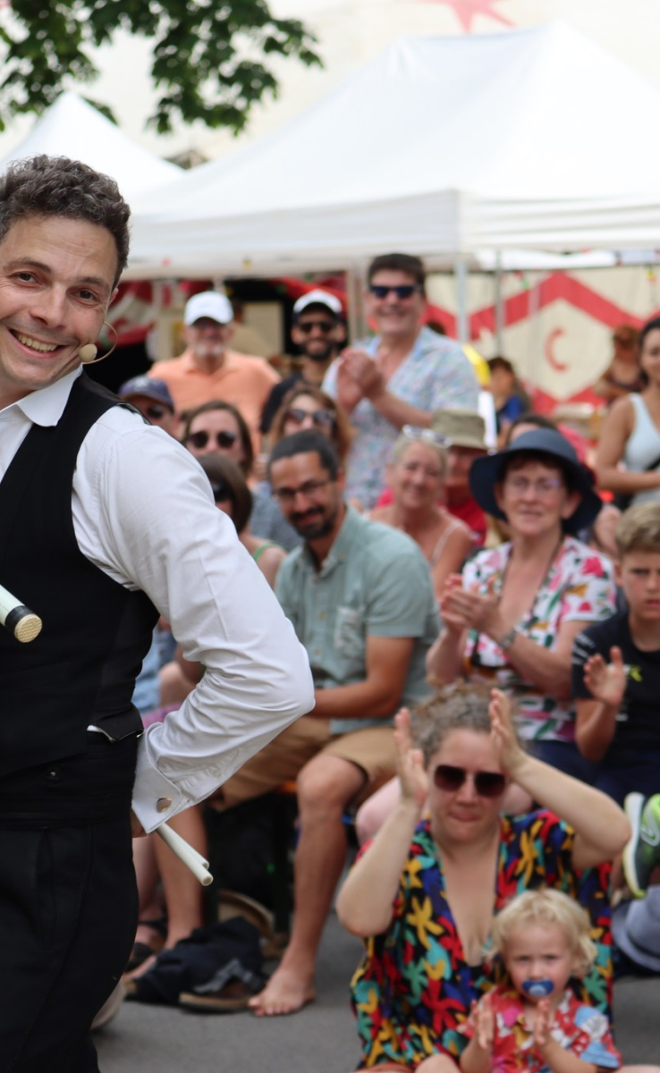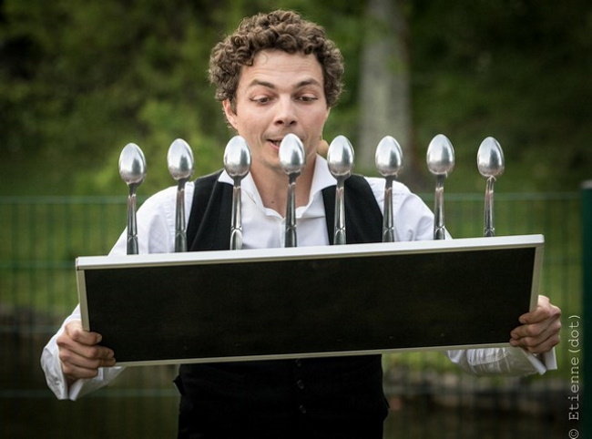 Pas notre Gentleman Jongleur, qui se propose de tout vous raconter de façon ludique et interactive. Des égyptiennes au monde « moderne », des pommes aux boulets de canon, le public découvrira que la jonglerie est un art universel, et que finalement on peut jongler…avec tout ce qui nous passe entre les mains !