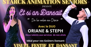 Si on dansait " De la valse au Disco" Et si on dansait ! (Formule Goûter - Après-Midi dansante). 1 & 2 Artistes Pro - Stéphane STARCK & Oriane, La danse est à l'honneur !" De la valse au Disco "Au programme : Valse,... Par Starck Animations Musicales