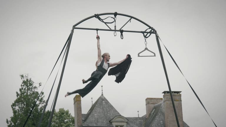 Quand un simple porte-manteau fait son intéressant c’est tout l’univers qui s’en trouve sans dessus dessous. Un acrobate décalé et son pianiste caractériel sont sur le coup. Sauront- ils mener à bien l’aventure sans retourner leur veste? Sans un mot, ces deux-là nous entraînent dans un voyage tantôt loufoque tantôt féerique ou même la gravité fait des siennes. Un spectacle tendrement incongru délicieusement burlesque qui réjouit les yeux et les oreilles. Avec Guillaume Casini, pianiste et Kervoa Gwénolé, artiste de cirque.