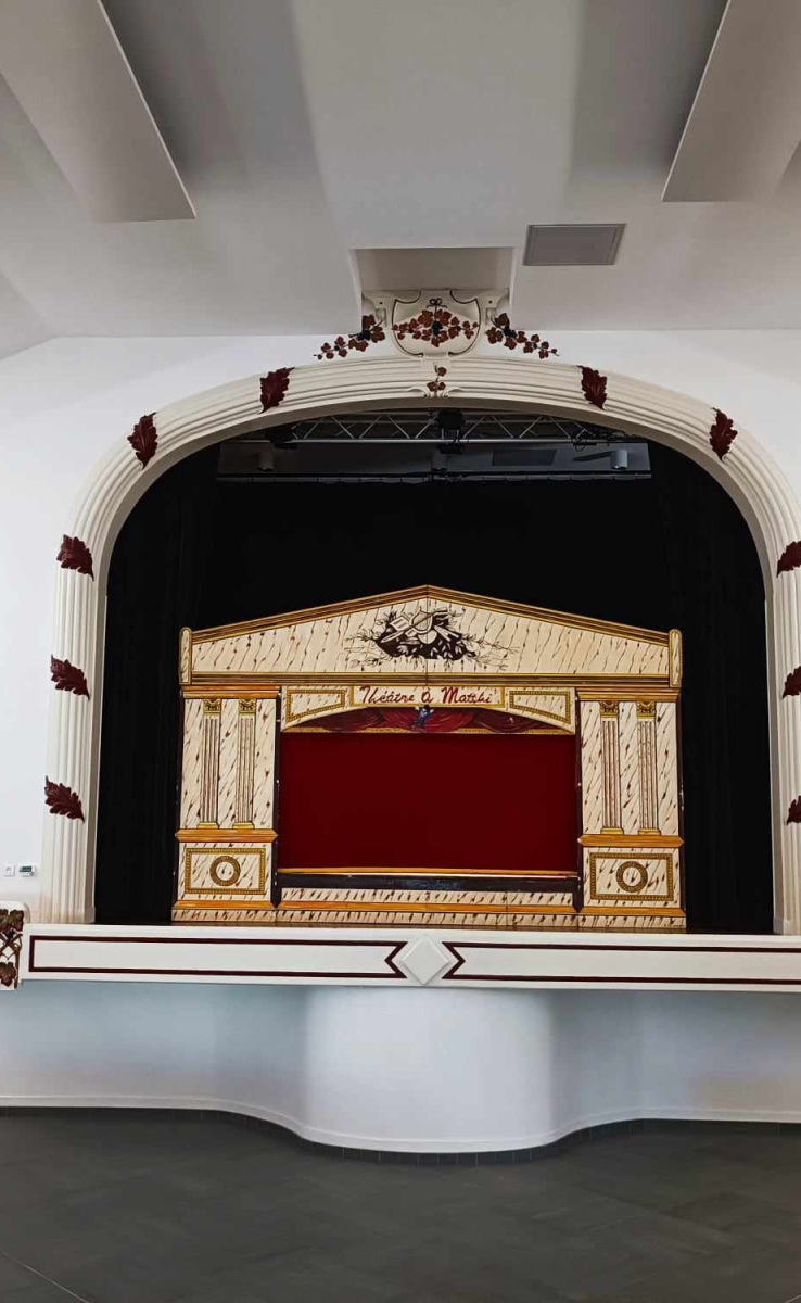 Marionnettes traditionnelles en bois sculptées à la main, présentées en Castelet.
