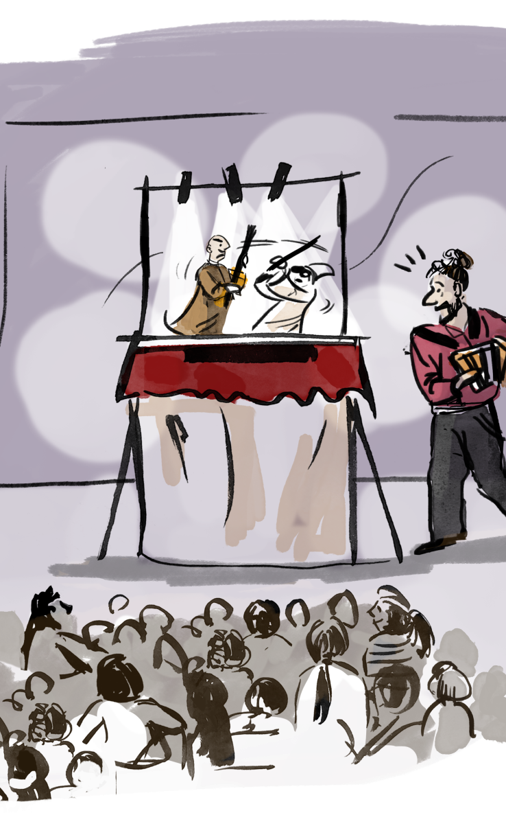Teatrino Mangiafuoco Sous les traits d’un troubadour venu d’un autre temps, Paquito le musicien nous entraîne dans un univers poétique et enchanteur. Au rythme de son accordéon, il fait vivre tout un petit peuple... Par Compagnie ancienne et perdue