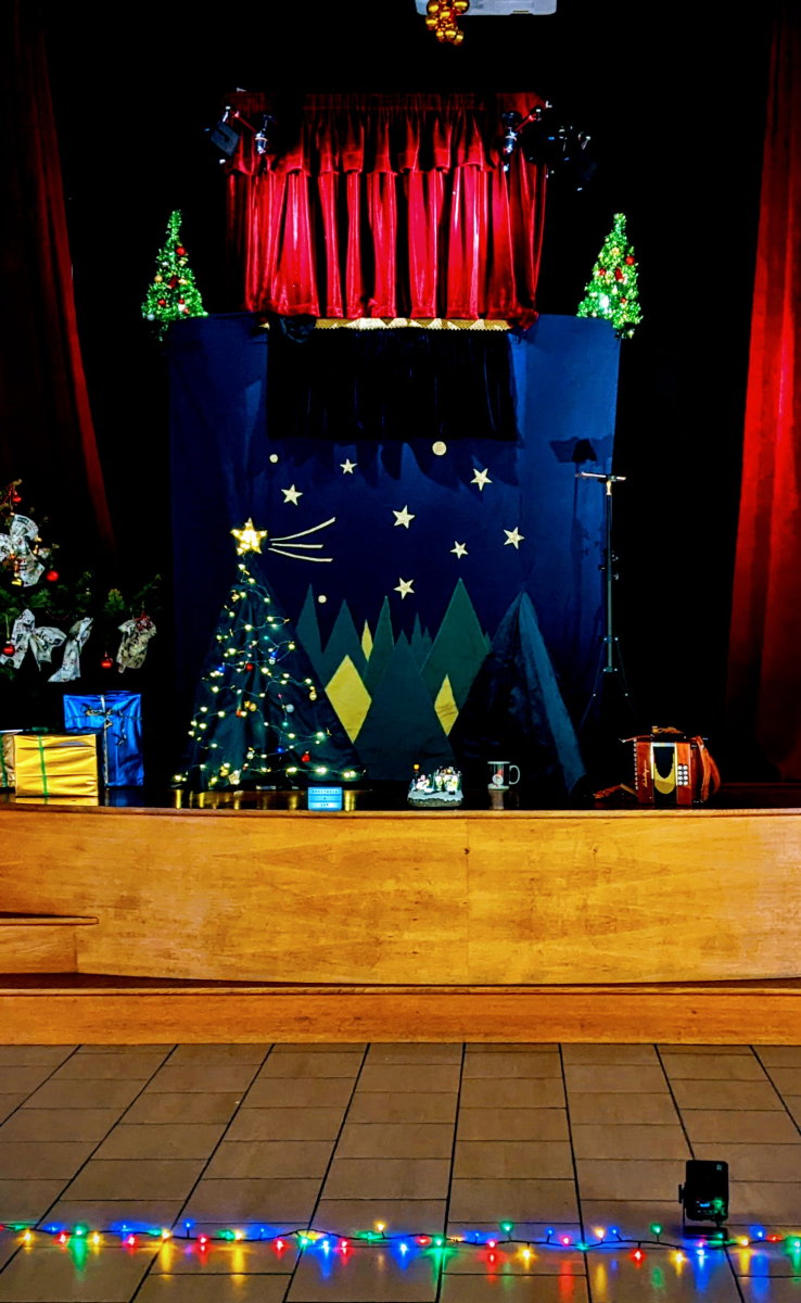 Mais grâce au public, à l'accordéon, et à la vive énergie de vie de Polichinelle. Nous réussirons à faire venir le père Noël et Polichinelle aura le droit à un beau cadeau de Noël.