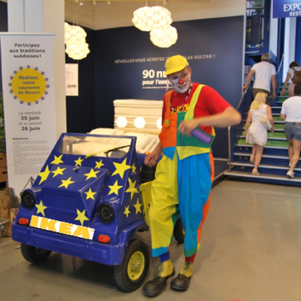 (Distribution de cadeaux, ballons ou bonbons aux enfants, et toujours des blagues aux parents.) Comme en Amérique, la voiture de BAMBOU, saute et rebondit tout en se déplaçant auprès des Enfants et des Parents.SUPER ANIMATION EN INTERIEUR COMME EN EXTERIEUR AVEC DE LA MUSIQUE DE FOLIE !!!(Moteur électrique et Sono Mobile 4 enceintes)