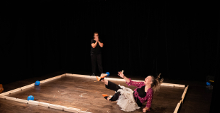 Nous avons choisi de représenter ce cheminement via un spectacle tissé de nos propres mots. Nous avons imaginé un espace débarrassé de tout, et dont le seul enjeu serait : la place de chacun, de chacune. Qui a le droit d’être dans cet espace ? Qui n’en a pas le droit ? Et pourquoi ? Qui décide ? Quelles sont les règles imposées et prétendument immuables, et sont-elles si faciles à oublier ? Comment se tissent ainsi les discriminations ? Comment les contourner, les abolir ?