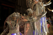 Leurs danses sont hypnotiques. Pour envoûter petits et grands, ils portent des costumes argentés qui s'illuminent la nuit, et la musique qui en émerge surprend les passants.