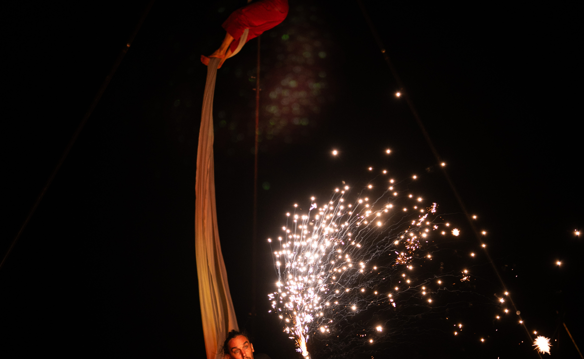 "Chrysalide" offre aux spectateurs un voyage sensoriel unique, les transportant dans un univers de magie et de transformation où l'art du feu et du tissu aérien se rejoignent pour célébrer la beauté de la métamorphose.
