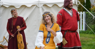 Animation médiévale, chanteurs et instruments anciens jongleurs accrobates