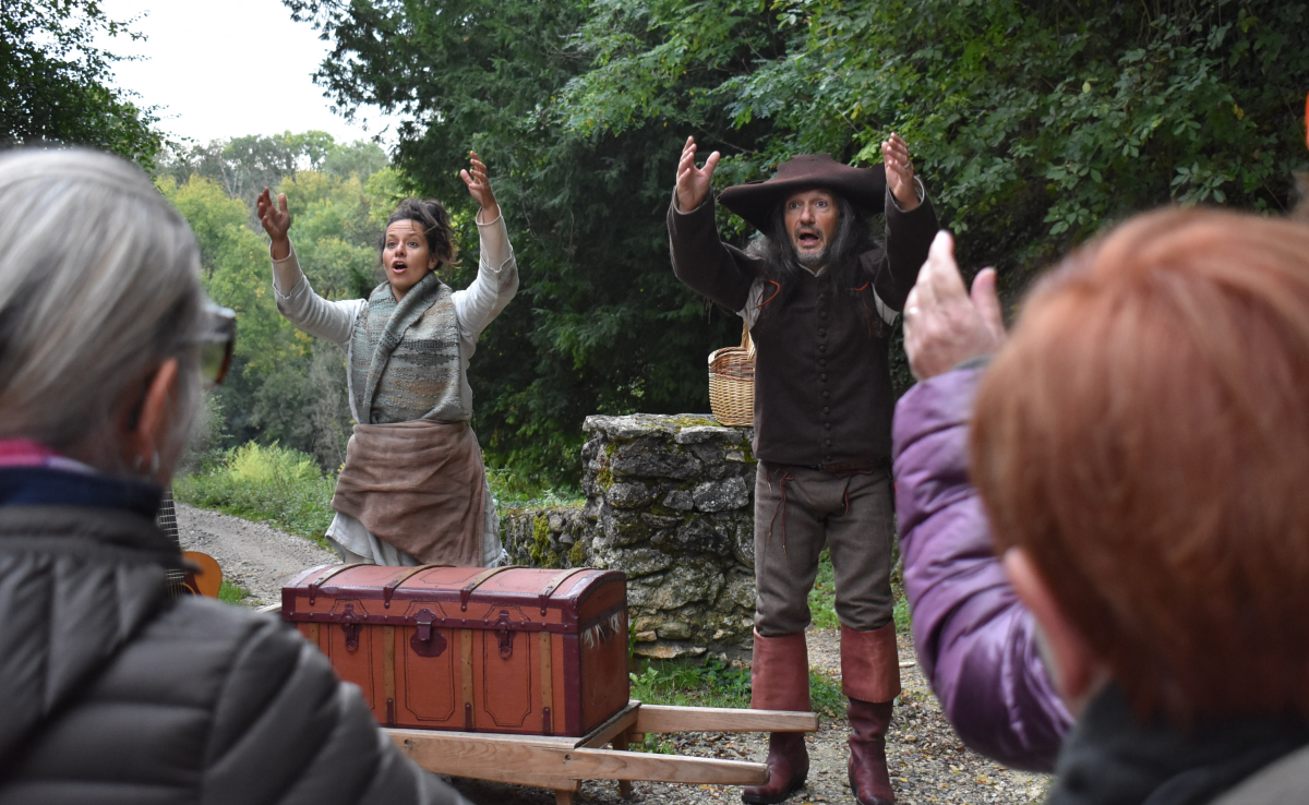 Au creux des douves du château, la répétition bat son plein. Un artiste de la troupe de théâtre itinérante vous sollicite avec empressement et vous confie d'ores et déjà votre texte à mémoriser pour la fête de ce soir... Saurez-vous suivre le fil de l'histoire et résoudre les énigmes qui jalonnent le parcours ? Parviendrez-vous à poser les questions pertinentes à l'ermite que vous croiserez, à prêter l'oreille aux récits les plus fabuleux et à entonner en chœur les airs de danse le long du sentier des loups !