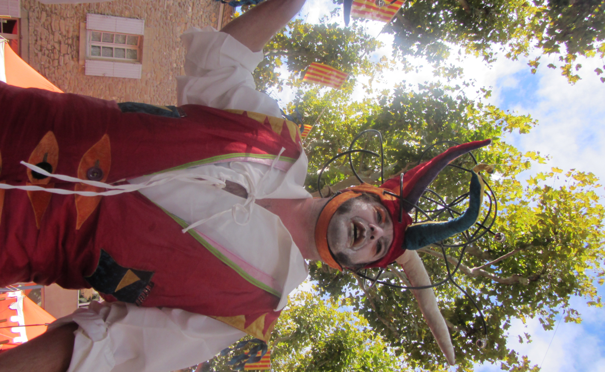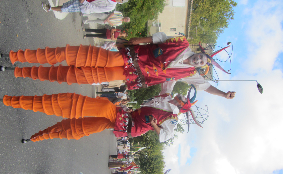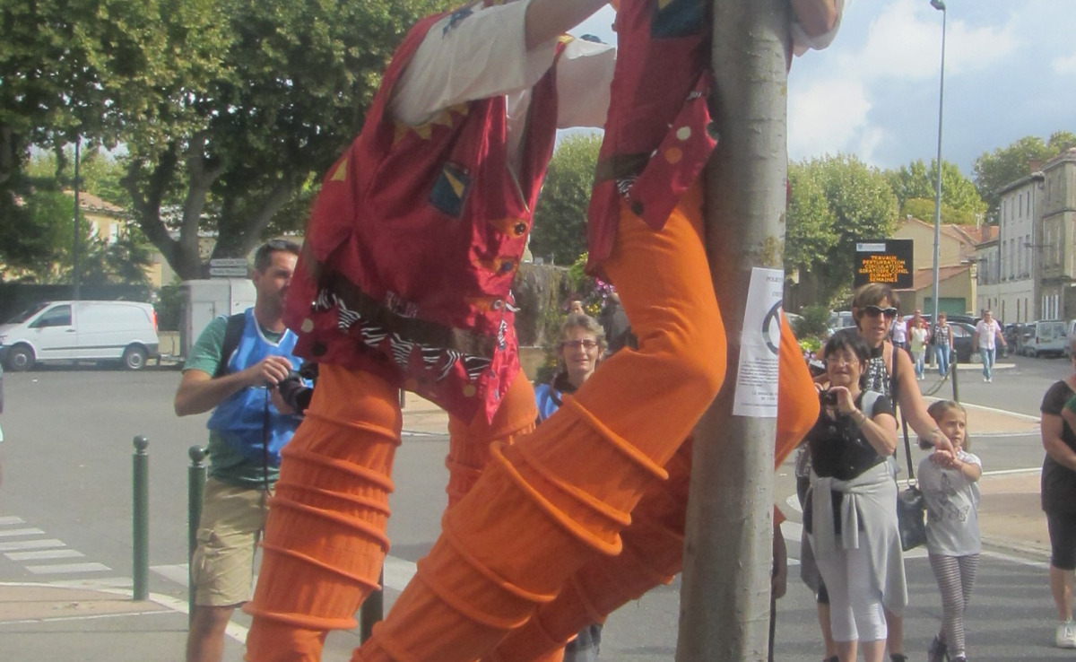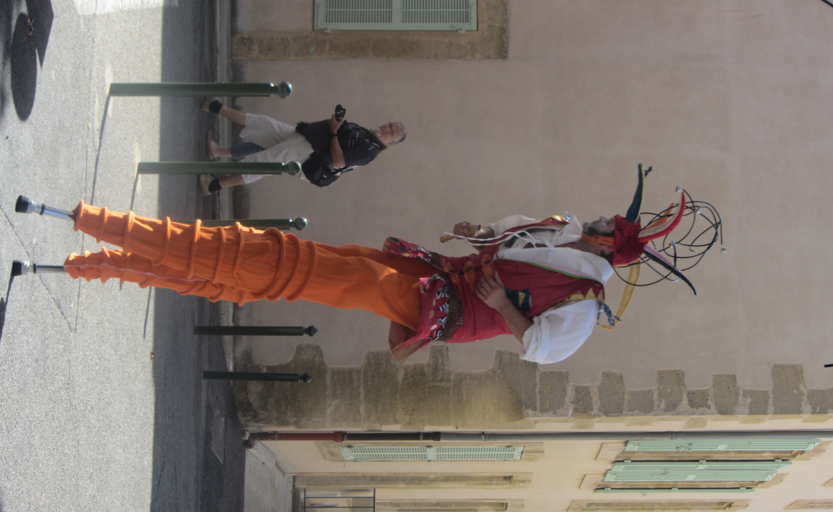 Parmi eux, deux personnages se distinguent : Edmond, le bouffon au cœur tendre, jongle avec des bolas colorées tout en déclamant des vers farfelus, tandis que Raymonde, l'ingénue espiègle, danse avec légèreté sur ses échasses, entraînant les spectateurs dans son tourbillon de joie.