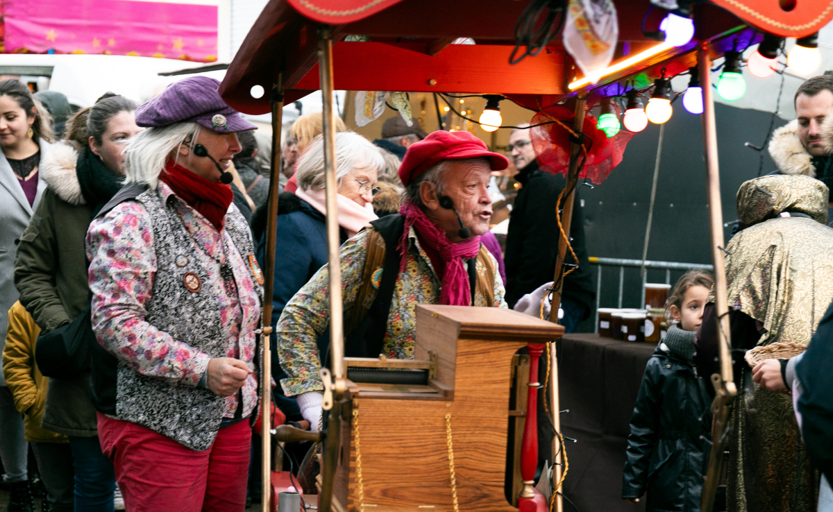 Le Duo "les Moineaux Chanteurs" et leur Orgue de Barbarie Et la p'ttite Guinguette Roulette Déambulation, sur un air très festif, vous embarquent pour Noël dans leurs univers de chanteurs de rue, de places en places, de rues en rues avec leur "P'tite Guinguette à roulette" assistance élèctrique...et l'orgue en Majesté