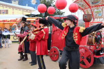 Voici la Loco Bulles, avec son nez en guise de tambour et ses yeux en forme de phares ! Des centaines de bulles sortent de toutes parts, car elle fonctionne avec du savon pour la joie des enfants. A son bord trois musiciens jouent des airs traditionnels au banjo, saxophone et violon. Ils font danser le jongleur-aiguilleur et la comédienne-cheminot qui dirigeront cette surprenante machine rouge sans passer inaperçu…