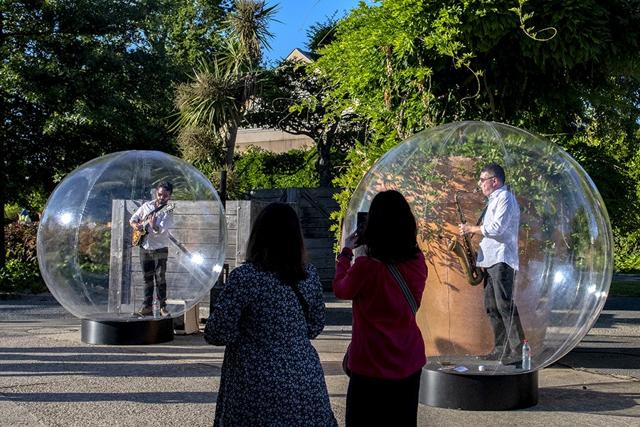 Formule : deux musiciens avec leur bulle transparente + 1 Technicien.