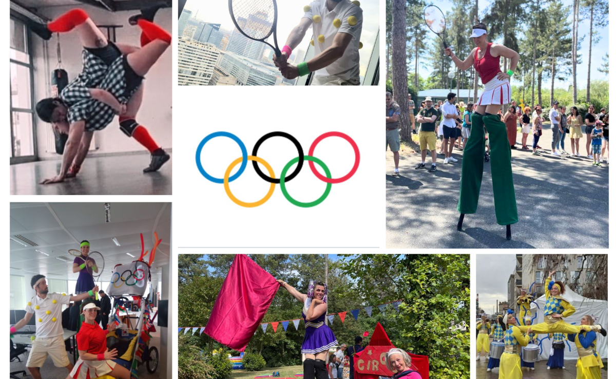 Le temps d'un événement sportif nos jongleurs, acrobates, échassiers, monocycliste, hoopeuse, clown se métamorphosent en athlètes prêts à monter sur le podium ! Nous pouvons former une équipe de cyclistes, de gymnastes, de break dance, tae kwondo, tennis, lutte, roller et bien plus encore. Dans une ambiance olympique, nos sportifs défilent en musique avec leur chariot sonorisé.
