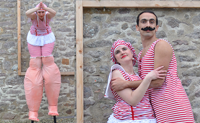 Deux échassiers hauts en couleurs et prêts à plonger dans un bain de foule vous feront rire et vivre un été inoubliable !