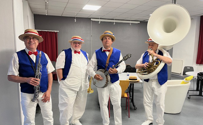 Preaching Jazz Orchestre de rue : parades, défilés mais aussi sur scène à partir du trio :Banjo, saxophone, basse ou sousaphone, trompette, trombone, percussions.Répertoire : Nouvelle Orléans, Dixieland,... Par The Cows Blues band