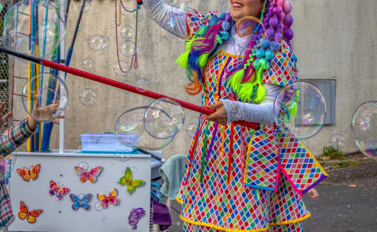 Je crée des Bulles à l’intérieur de votre événement. Un moyen fantastique de créer une atmosphère pétillante qui divertira votre foule avec une balade de bulles qui apporteront sourire et joie pour tous les âges.