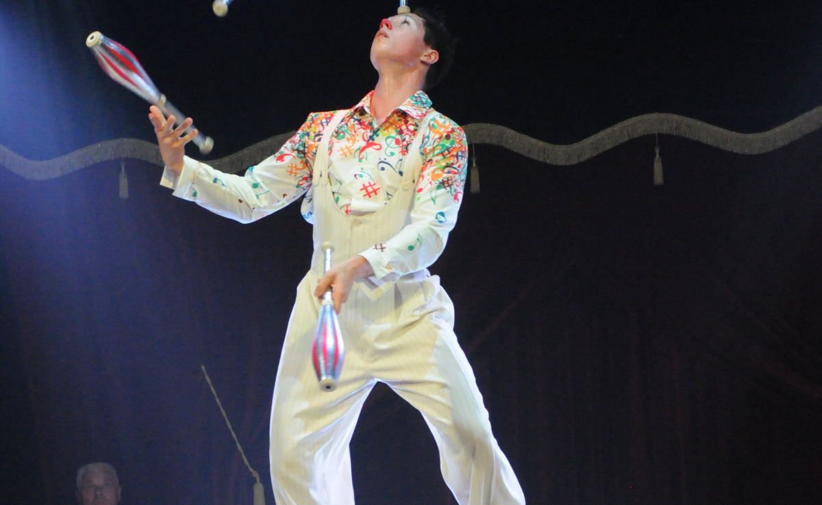 Au programme : Hula-hoop, Clown, Trompette, Portés acrobatiques, Jonglage, Equilibre, La féerie des bulles et le chat acrobate !