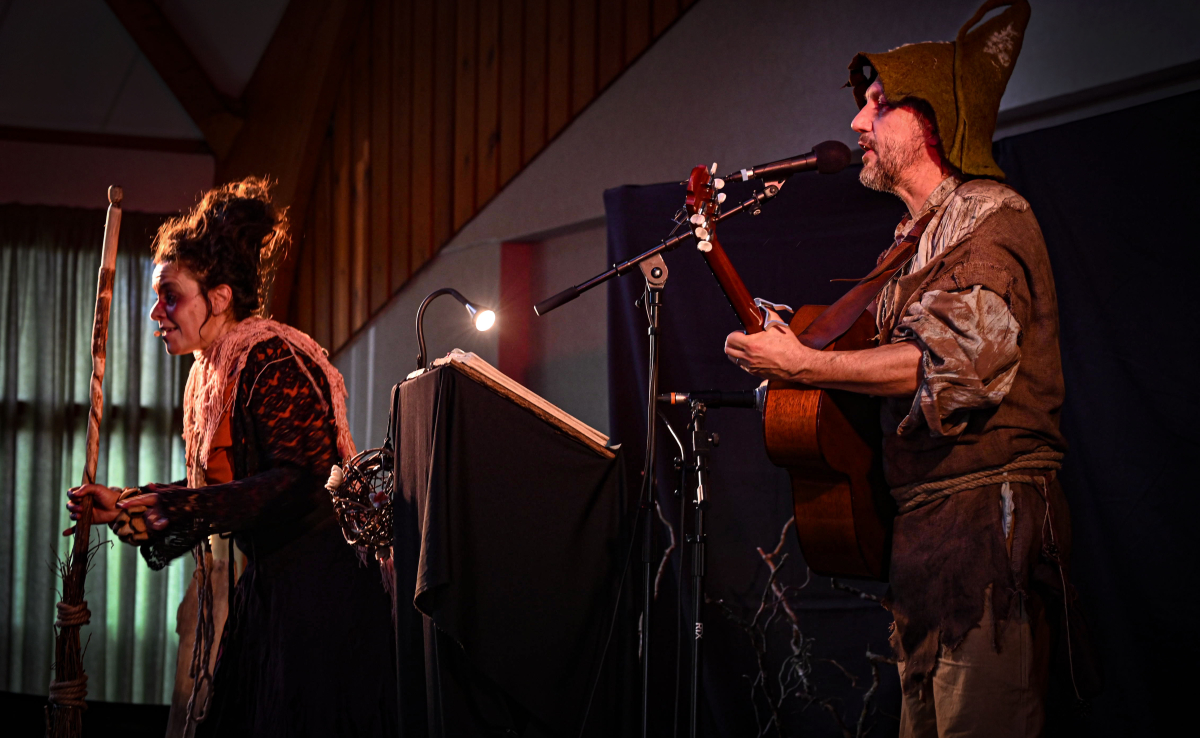 Entre contes envoûtants et chansons participatives, nos deux compères entraîneront le jeune public dans une folle aventure vers le grand bal des aïeux. Petits et grands sont invités à chanter, danser et aider la Sorcière à jeter le sortilège parfait pour que la fête ait lieu !