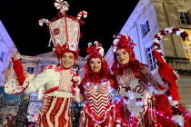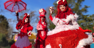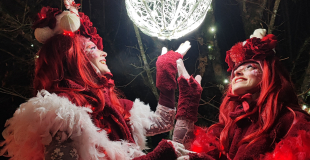Les Alizarines, majestueuse troupe d'échassiers rouge et blanc, incarnent la magie de Noël à travers une parade poétique et enchanteresse. Leurs costumes lumineux, scintillant comme des boules de Noël, captivent petits et grands, apportant une touche féérique aux rues des villes. Leurs longues silhouettes gracieuses, habillées de rouge éclatant et de blanc neigeux, évoquent les couleurs traditionnelles des fêtes de fin d'année. Chaque mouvement des échassiers est sublimé par des lumières qui dansent, créant un véritable ballet aérien.