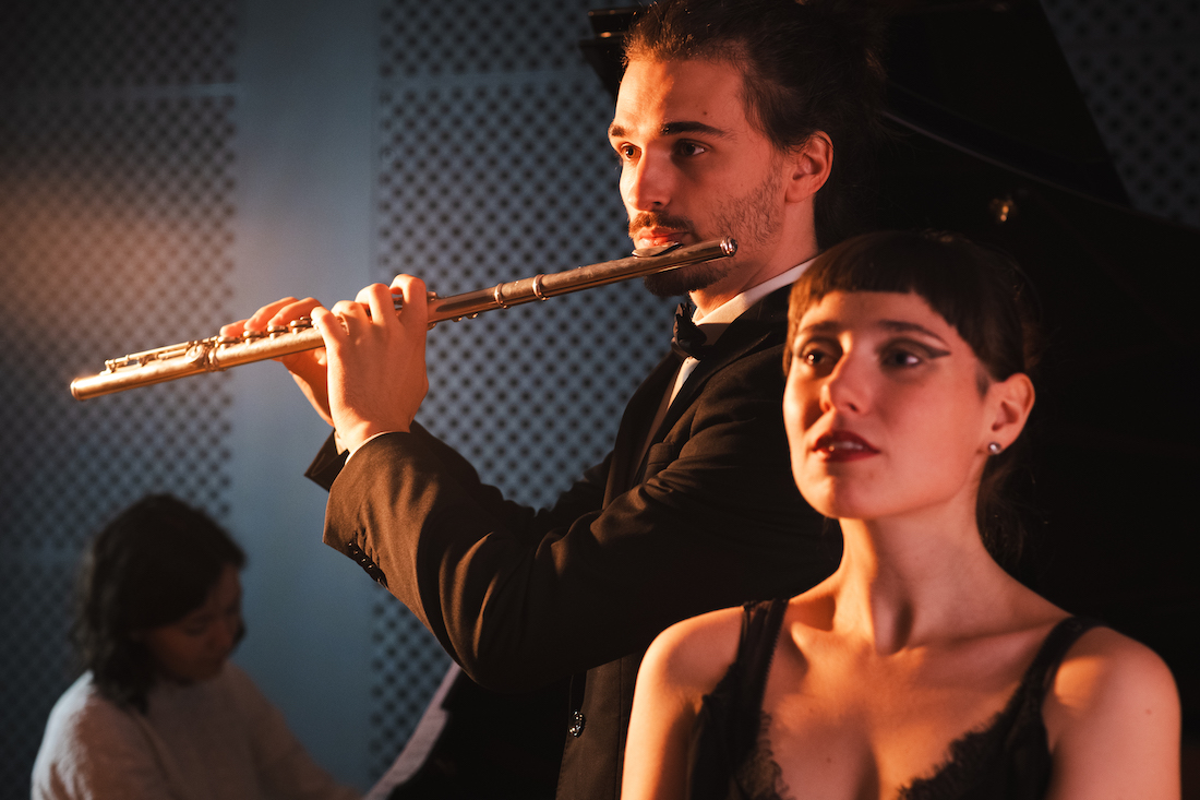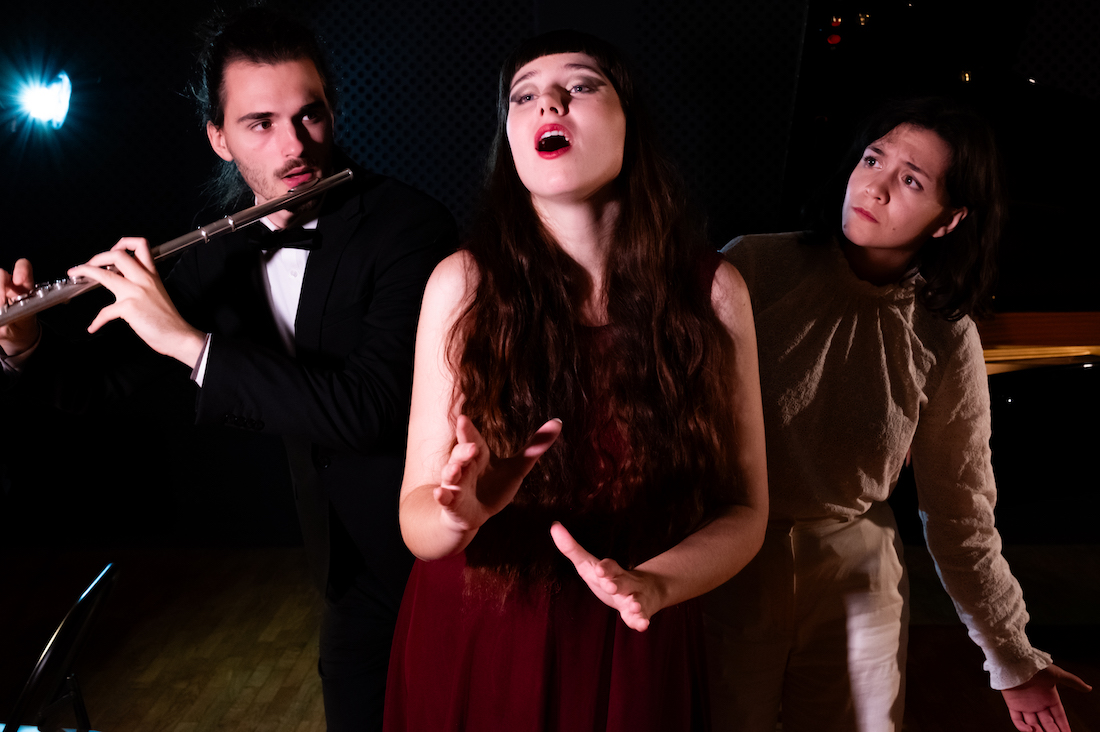 Léon est un flûtiste rigoureux, exigeant, fervent défenseur de la musique française du XIXe siècle. Camélia, jeune chanteuse d’opéra, extravertie et maladroite, est bien décidée à donner un récital en soliste autour de Carmen. Maud, assise au piano, quitte sa rêverie pour accompagner ses collègues avec talent et bienveillance. Ces trois personnages désaccordés se retrouvent le temps d’un concert : pour séduire le public, ils se lancent dans une course musicale effrénée. De Debussy à Piaf, il y en aura pour tous les goûts !