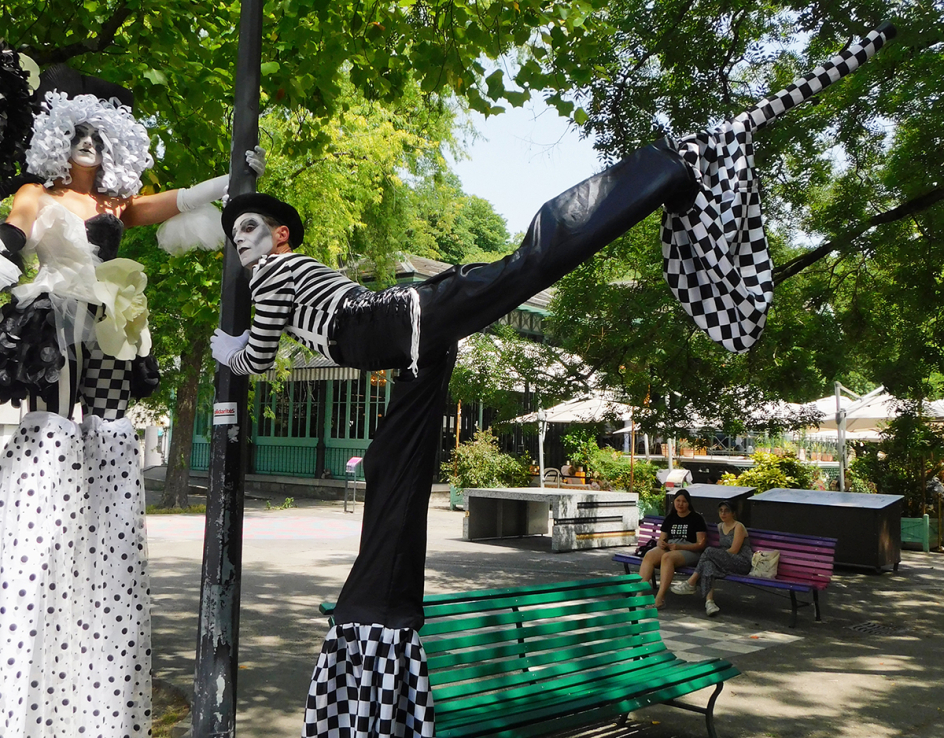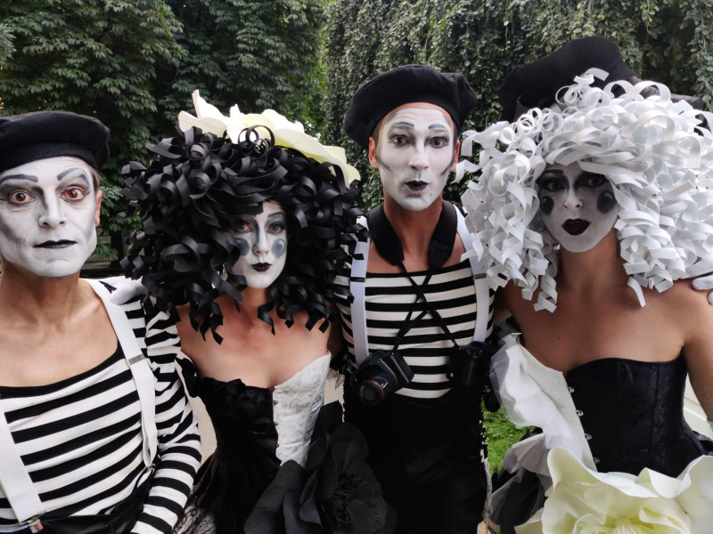 Découvrez une parade unique, où quatre mimes échassiers noir et blanc, inspirés par l'univers de Marcel Marceau, vous invitent à un moment magique et festif. La Parade des Sourires, est un spectacle interactif où les personnages, à travers des danses chorégraphiées et expressives, apportent joie et émerveillement à chaque instant.