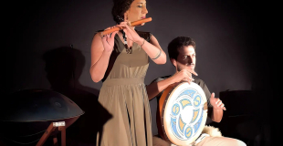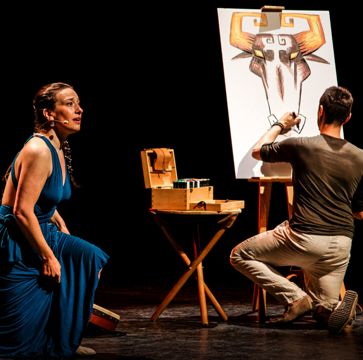Une conteuse avec ses instruments de musique féeriques et sa jonglerie de cristal. Un dessinateur qui illustre en direct le conte et offre sa fresque à la fin de la prestation à l'organisateur.
