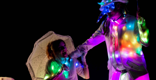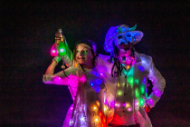 Jongleurs, danseurs et échassiers seront au service de la féérie, costumés de mille lumières, et équipés de nombreux agrès de jongle: éventails, bolas, ombrelles, bâtons, balles, sabre, bulles et autres surprises encore !