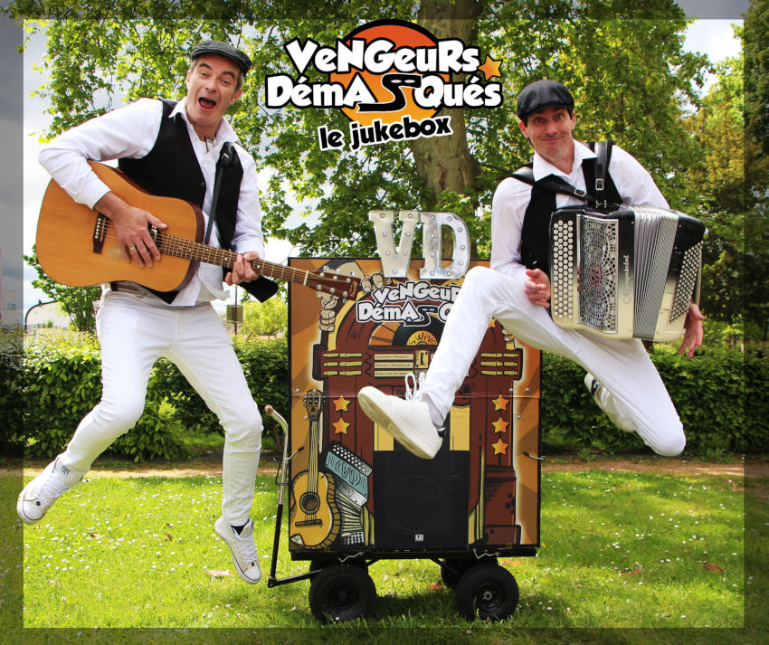 Fêtes de villages, marchés artistiques, Intermèdes Festivals, Parcs d'attractions et autres événements d'art de Rue....Le Jukebox ambulant des Vengeurs Démasqués a déjà joué pour les petits comme les plus grands lieux & événements. Direction une vrai machine à tube qui mettra l'ambiance et le sourire pour votre public ou vos festivaliers.