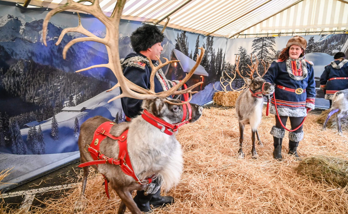 Nous vous proposons les rennes du Père Noël accompagnés de leurs soigneurs en tenue lapons. Notre Père Noël de luxe peut participer à cette animation pour le plus grand plaisir des petits et des grands. Et notre véritable traîneau Suisse peut être en décor dans notre enclos ou à l'extérieur pour effectuer des photos.