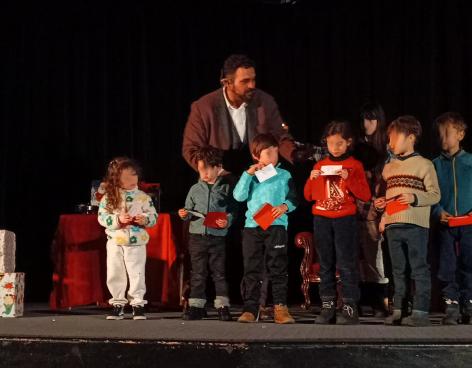et le superviseur à l'emballage et à la distribution des cadeaux,