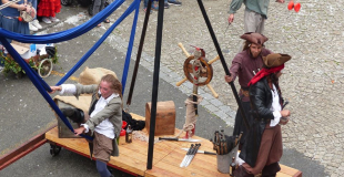 Déambulation Pirates Fin Comme un Tonneau Le Capitaine Barbapoux et l'intrépide Mary-Castagne animent vos festivals, carnavals et fêtes maritimes à grands coups de jonglerie, de magie, de musique et autres surprises !!! Ils déambulent... Par Cie Pirates des Caravanes