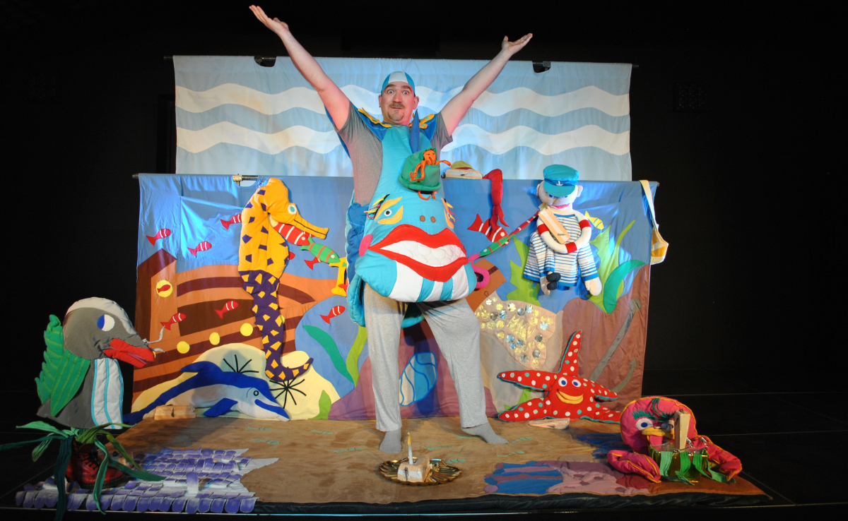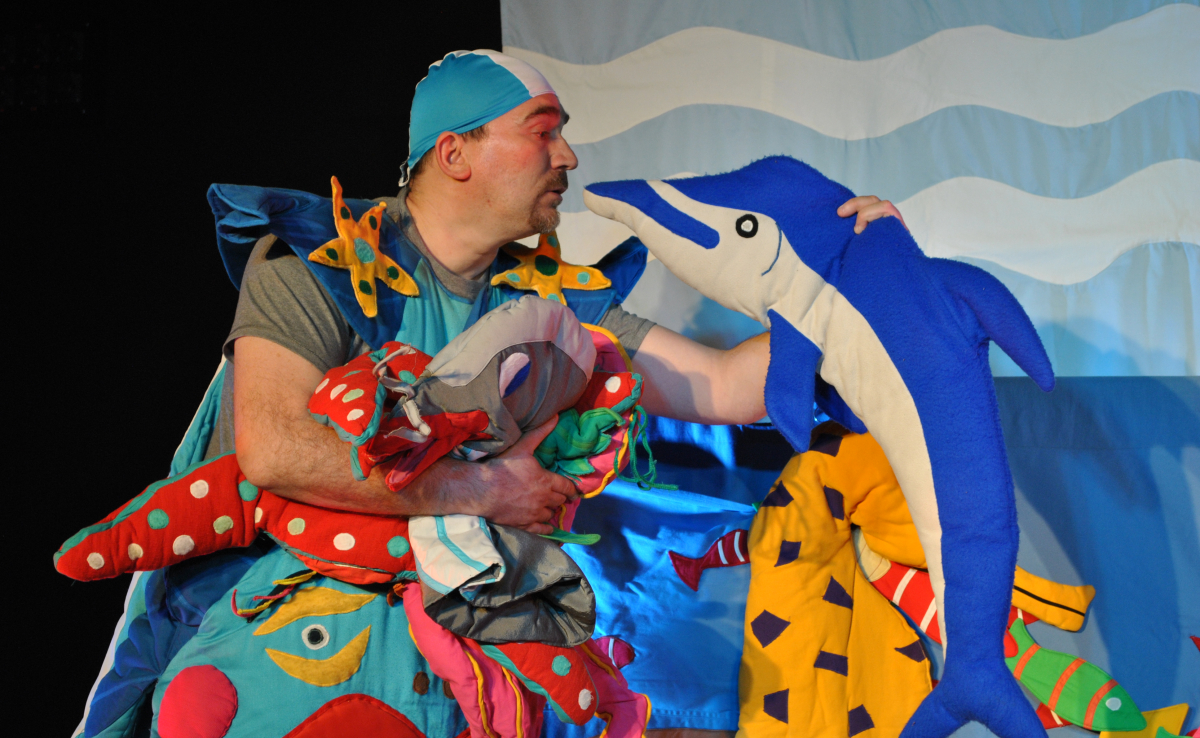 Décor sous-marin, marionnettes, costumes, jeu du comédien… tout est réuni pour entraîner les petits dans la folle aventure aquatique de Balie, la Baleine Bleue.
