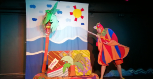 Ce spectacle a des allures de vahinés. Le comédien perroquet évolue dans un décor d’île avec un palmier, du sable, une cabane, la mer, des noix de coco à gogo. De la marionnette caméléon aux ailerons sur roulettes des requins, notre perroquet raconte sa vie en chansons sans perdre la tête. Toutes ces poupées de chiffon représentants les moussaillons et la princesse, arriveront-ils à retrouver Papatito ?