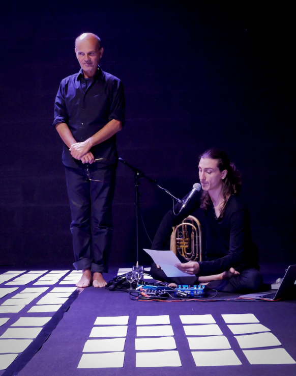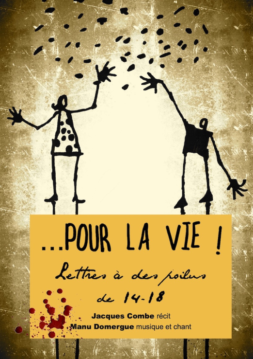 «…pour la vie !» C’est un spectacle où deux paroles s'entrecroisent et se font échos : une histoire contemporaine originale comme fil rouge, en face de laquelle je lis des "lettres de guerre", le tout accompagné du chanteur-musicien Manu Domergue.
