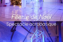 Spectacle intégrant des performances d'acrobatie, jonglage, tissu aérien et roue cyr.