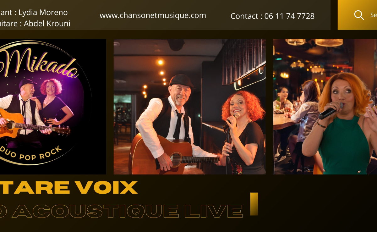 Pour un événement à la fois chic et chaleureux, faites appel au groupe Mikado, basé dans le Gard. Avec leurs reprises acoustiques d’artistes comme France Gall, Vianney, ou Mylène Farmer, Lydia Moreno et Abdel Krouni apporteront une touche musicale unique à votre soirée.