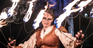 “Sur le chemin du Valhalla” présente une suite de numéros de feu jonglés et dansés. Vous y trouverez plusieurs accessoires de jonglage, éventails, double bâtons, ou dragon-staff ainsi que des effets spéciaux créant des flammes magiques.