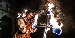 Armure artisanale, éléments de décors et musique médiévale agrémenteront l’univers viking de ce spectacle de feu.