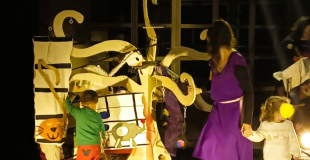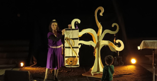 A l’issue du spectacle, les enfants et les familles peuvent venir regarder de tout près l’arbre et ses branches en-musicalisées de notes de tissus.