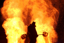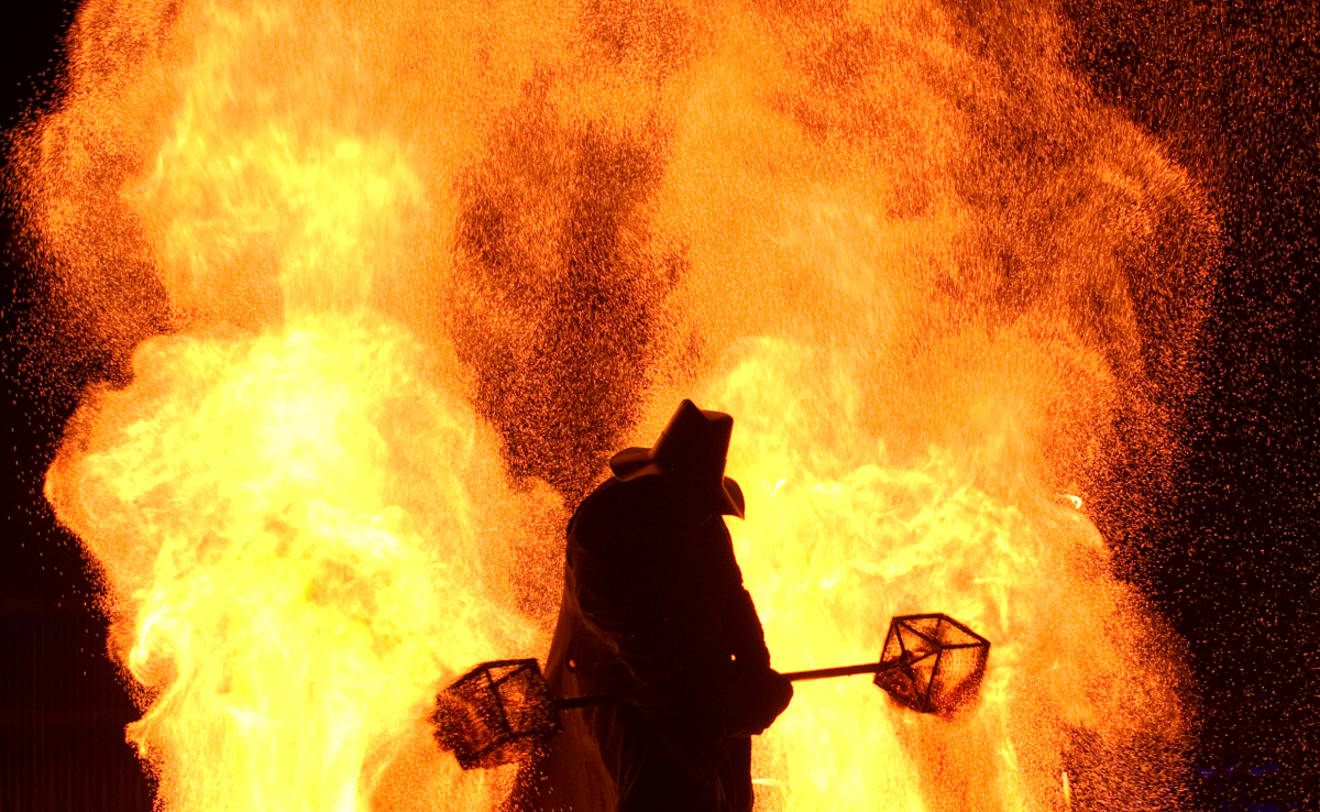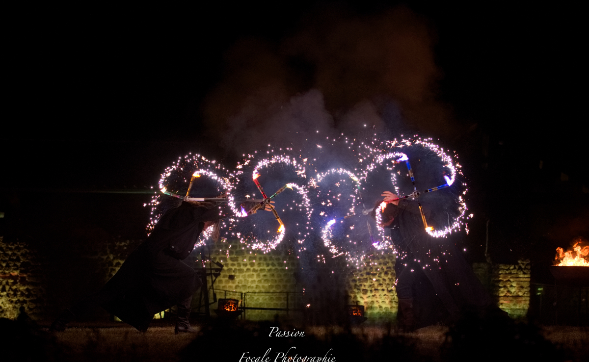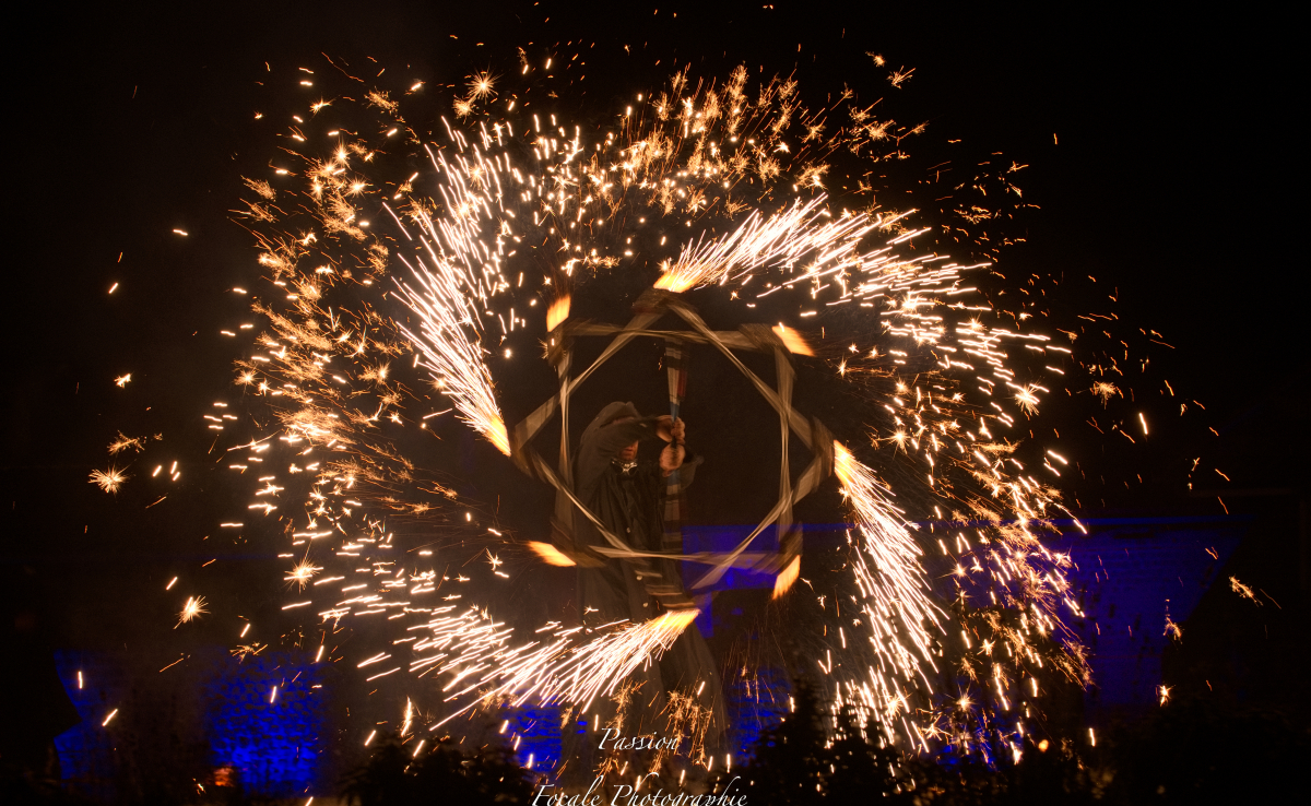 Yule : Spectacle feu et pyrotechnie Lorsque s'allument les lanternes, les tambours retentissent dans la nuit noire... Entrez dans un rituel de magie ancestrale, une lutte de pouvoir entre sorciers et sorcière, un passage vers le monde... Par Faces & Fire Cie