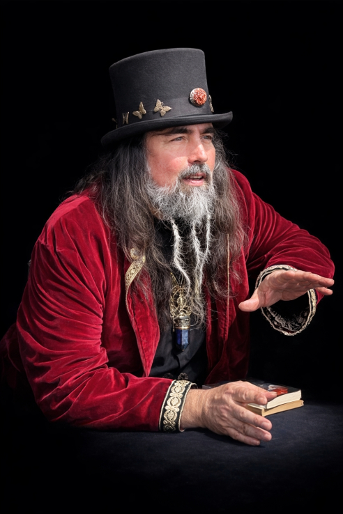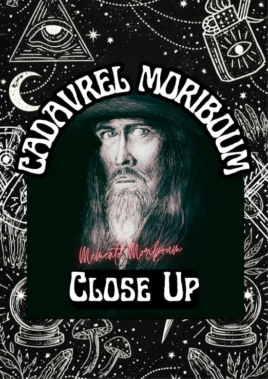 Un étrange professeur surgit entre vos convives, chargé de mystérieuses reliques et d'expériences fascinantes. Cadavrel Moriboum pratique l'art délicat de la magie rapprochée : celle qui opère à quelques centimètres des yeux, celle qui trouble l'esprit et enchante les tablées.