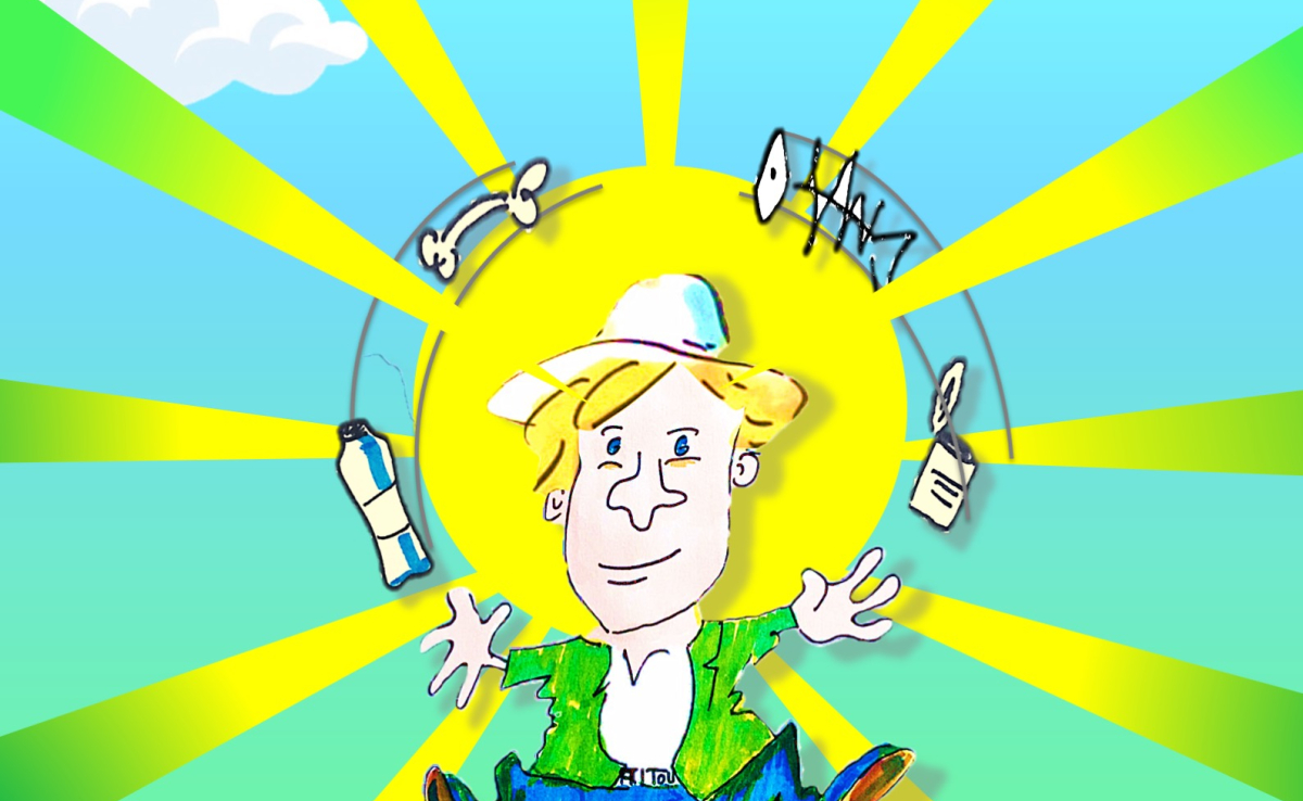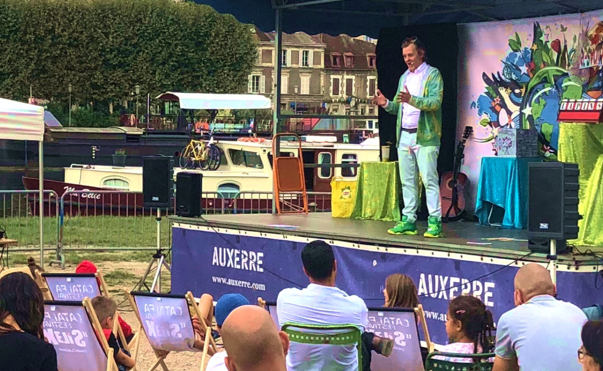 c'st un verotable ONE MAGIC MAN SHOW dans lequel chaque tour de magie est associé à un message d’information ou de sensibilisation sur l'écologie et le recyclage et toujours avec humour et amour !