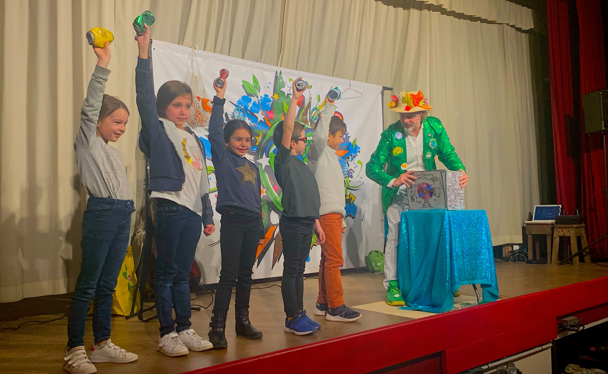 Disparition, transformation et réapparition de Bouteilles en plastique, en verre, canettes et même les vêtements du public, rien ne résiste au Professeur Tritou !