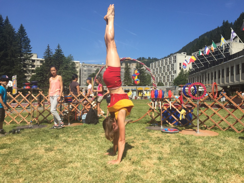 Ateliers cirque familiaux en libre service et encadrés par des artistes professionnels faisant régulièrement des démonstrations sur musique afin d'en mettre pleins les yeux aux futurs artistes.