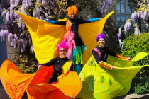 Tels des papillons aux couleurs flamboyantes et acidulées, deux ou trois personnages virevoltent dans les allées de votre manifestation.