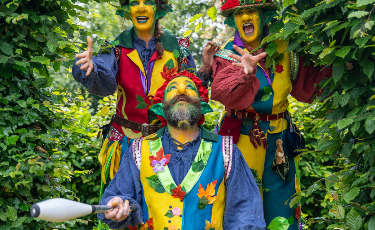 Cette déambulation est composé de 2 échassiers et 2 artistes au sol.