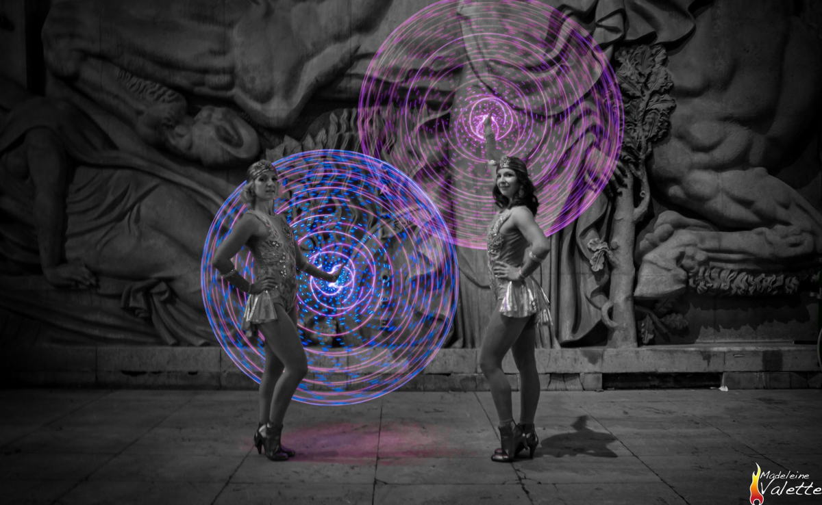Basée a Paris et dans l'Allier, les starlettes Lilly et Lila, un duo céleste et “lovely”, s’accordent avec grâce et talent dans leur show aux multiples cerceaux lumineux. Tout droit sorties d’un film en noir et blanc, ces étoiles de la scène virevoltent au rythme du swing et font naître petit à petit la lumière dans un festival éclatant de couleurs, mêlant formidablement l’univers du cirque et de la danse entre dextérité et chorégraphie endiablée.