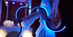 Jonglerie lumineuse, danses chorégraphiées avec agrès de cirque, arts martiaux et éventails soie, éventails Led, Buggengs, Lotus Dance ...