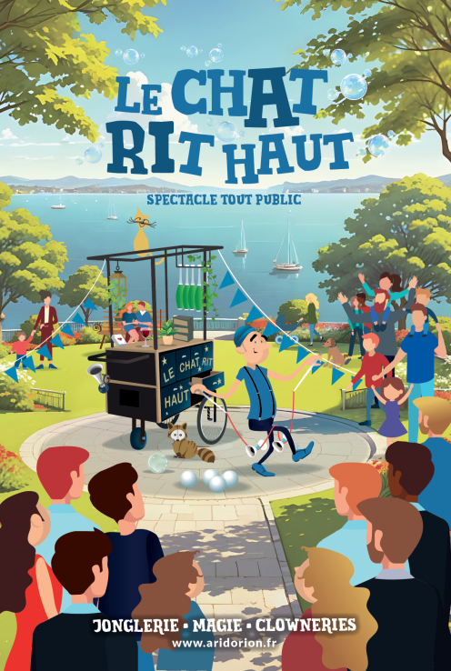 Accompagné de son chat qui guette du haut du chariot parfois on se demande si c'est le jongleur qui réussi ses tours ou si ce n'est pas le chat qui lui souffle la solution ??